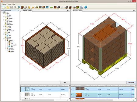 产品堆叠 物流优化、码垛、打包和货车装载:• 易于使用• 许多专门用于码垛和物流优化的功能:箱式码垛、 填箱/装箱、最优箱计算、码垛捆绑包(平板箱或纸箱) 添加间隔层、盖子、保护膜、角钢... • 库存中箱子的数据库• 自动分析报告• 强度分析